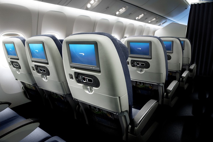 • Personal in-flight entertainment screen with extensive on-demand entertainment system and noise-cancelling headphones