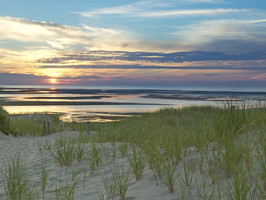 the beauty of a sunset dune tour with a traditional New England Clam Bake dinner served picnic style.
